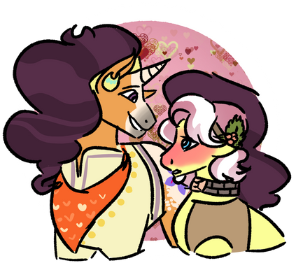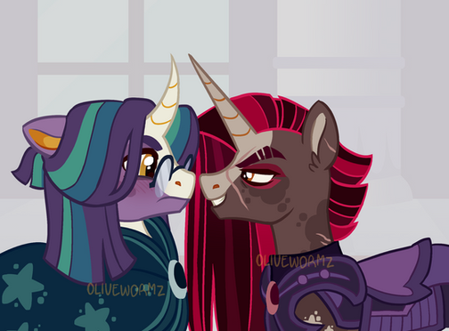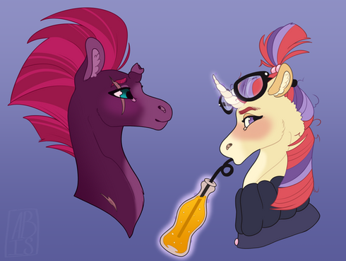 IM SO SORRY IVE BEEN DEAD FOR SO LONG FINALS ARE DONE THO SO I CAN POST MORE IVE JUST BEEN PLAYING MINECRAFTAnyway Tempest did most of her rehabilitation work in canterlot she went to a lot of therapy for all the trauma a disability like a horn break can cause as well as the psychological abuse she was shown at the hands of the storm king. Tempest really doesn't identify with the name fizzle anymore and she thinks its a bit linked to her trauma but now she gets by a lot better. She mostly set out to live a life with out doing anything as Twilight set her up for free in a canterlot apartment with all the wants she would ever need but Tempest got board. She had been doing so much for so long just stopping really sent her into a deep depression. What was the point? So she started bussing tables at a sweets shop, it was her talent after all and thats how she met Saffron. Saffron met Tempest when she went out to eat at a new 50s themed diner. Saffron like anyone with eyes, was smitten. She saw her a couple more times before she really pulled up the courage to ask for a date. They were, kind of a rough start tbh Tempest doesn't really know how to actually date due to her not really having FRIENDS either but Saffron is really enthusiastic about it and Tempest, just cant say no, again, and again, and again. They don't really get married or have kids for a long time but Tempest is honestly really content with that and Saffron is too, theyre just ugh goofy and supportive and in love.