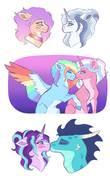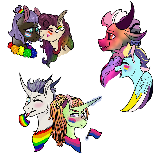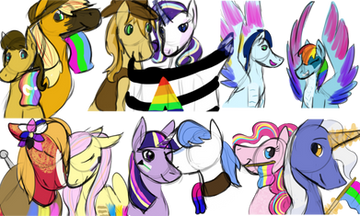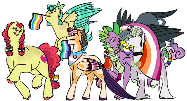 Its been a bit but happy pride!! Heres my mane 6 gender and sexuality headcannons again but this time in a new chibi style that ive been trying out. Pronouns for my mane 6 are as followed.Twilight uses she/he pronouns but usually only friends use he pronouns for her hes nonbinary! Pinkie literally only uses pinki/pie as pinkie's pronouns but overall is genderfluid even if pinkie never changes pronouns.