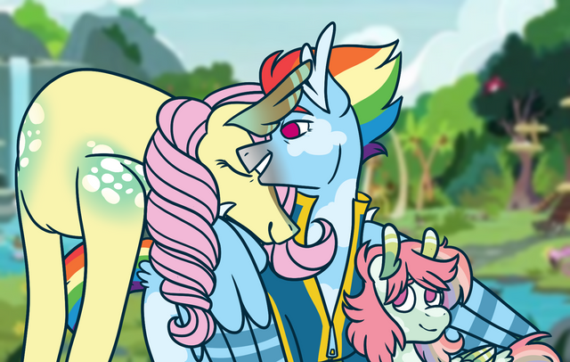 Fluttershy is a transwoman uses she/her almost exclusively but she has an unlockable pronoun with they/them if youre friends with her. Rainbow uses he/they pronouns but like Fluttershy only lets a very small amount of people use they/them for him he's genderqueer and doesnt really like labeling his gender.