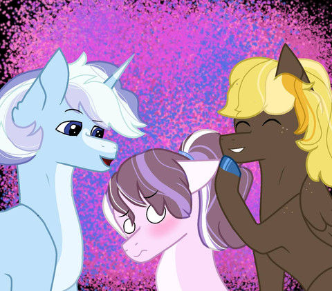 Multiple posts? in one day?? FROM ME??? anyway ive been working on some of the parent stuff for the eonverse and so i want to talk about my headcannons for these three magic show wives! I'll go more into the pies on a different post but for this one I'll mainly focus on Maud.Maud Trixie and Starlight are all based out of ponyville they mainly use Maud's rock cave as their home but they use trixies caravan as well, its just hard to have a family of 6 in Trixie's small wagon, roadtrips are fun though. Trixie works shows mainly with her daughter Illustria and together they work amazing feats of magic, Trixie isnt the most magically skilled in the academic sense the she makes up for that in her creativity and home brewed show magic spells, shes not book smart but she sure is crafty! Starlight on the other hand is the exact opposite, she's never been super magically talented, shes got a smaller stubbier horn that makes magic a bit harder for her but she makes up for it in pure technical skill, shes a pioneer for unconventional magic and has a lot of magic ability that people dont really understand from the get go. She never got into Celestias school of magic because her skills were much more volatile and incontrollable as a child but now she makes it work much better as she teaches and helps ponies with more unconventional magic skills, our town is more of a place for misfit ponies in my verse and its less weird and evil and culty and more a small commune of ponies trying to do things in a less conventional way. Maud is the only non magic wife but she really makes up for it with raw talent and hard work. Shes a doctor and doesnt do a lot of the show work though she supports her wives and daughters in their magic show endeavors and always travels for their family shows. Shes a very soft spoken pony and realized a bit into dating Mudbriar she really didnt want to DATE him more so BE like him. Maud is very very butch (stone if you will haha) and is really the pillar of her family. She usually works the more touchy business expenses of Trixie's shows and has become a very skilled accountant and marketer while she also works as a geologist. Maud usually goes by She/Her but sometimes she uses He/Him and Trixie pretty much uses every pronoun cuz she wants all of them. Theyre both butch lesbians and Starlight is their Very femme wife. They have 3 daughters who all excel in different facets of show business be it on the stage or behind the scenes.