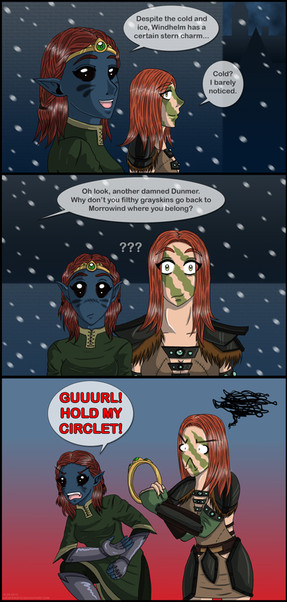 Don't get me wrong, I still think this is absolutely hilarious! Just wanted to throw my two septims in on it. DUNMER FOREVER!