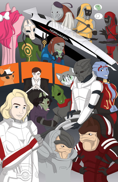 I was actually just thinking about this the other day, how awkward it would be if the characters could somehow see what's written and drawn about them. This is an awesome picture. Also, I love Wrex's troll face, as if whatever they're looking at is something he made.