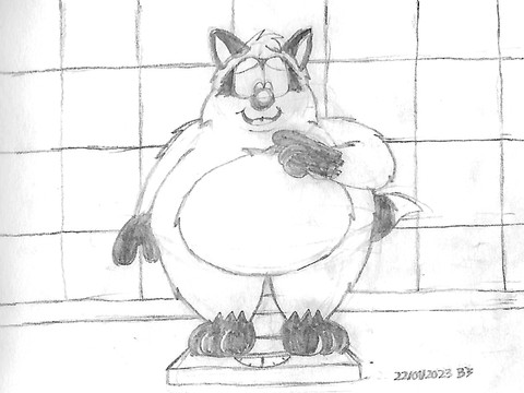 The legs are a bit thin in comparison to the rest of him. His hips should flare out as wide as his belly, at least, that's how fat people usually look, it's how mine are. =B The tail looks a little thin at the end, I don't know if actual raccoon tails thin out like that, you'd have to google for some real raccoons, and if that's how the tail -is- supposed to look..My bad. Anyways, hope that helped, thanks for sharing!