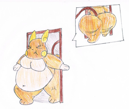 This was a drawing based on an interactive story on Writing.com by Lord Waddleton (which you can find here: [link] ) It's the Raichu morph character, Ray, checking out his profile in a mirror. As you can tell, I was too lazy to draw the reflection in detail.I originally was facing some artist block while trying to draw this, but instead of only doing it in openCanvas, I pulled out my sketchbook and sketched it out in pencil first. It helped a lot.