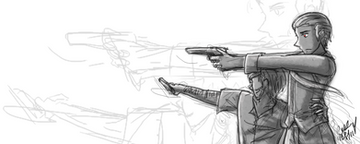 Thank you! I'm glad you like their characterisation, it's nice to be able to draw Sebastian outside of the butler constraints! Ciel's still a moody little shite though, haha. Yes, the AU is lots of fun, post-apocolyptic world and Ciel generally sticks close to Sebastian for the sake of protection and he's not particularly good with decent size guns so a revolver will have to do! Lucky he has Seb to look out for him or he'd be dead meat!