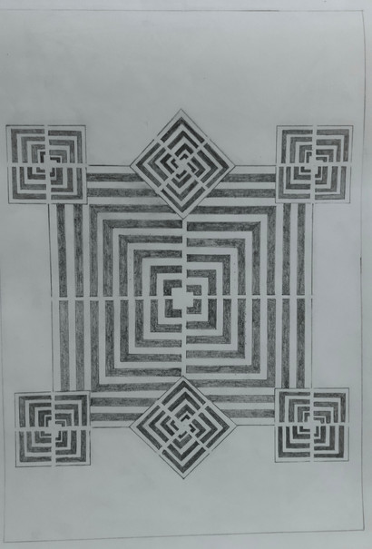 In my head, the pictures I draw corner-to-corner are just walls with intricate designs. This one doesn't impress me as much as the others but it was still fun even though the nonsense on the edges bum me out every time I see them.