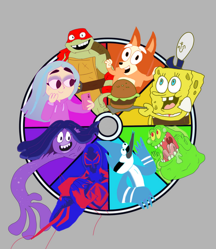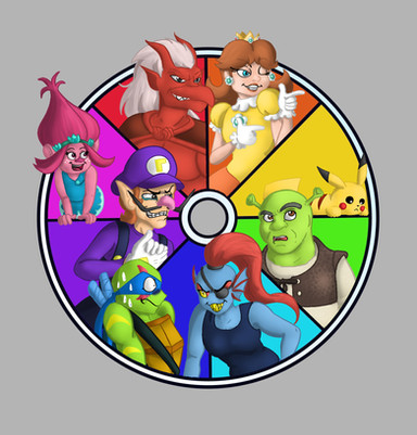 My attempt at the color wheel challenge featuring characters suggested by my Twitter followers!We have: