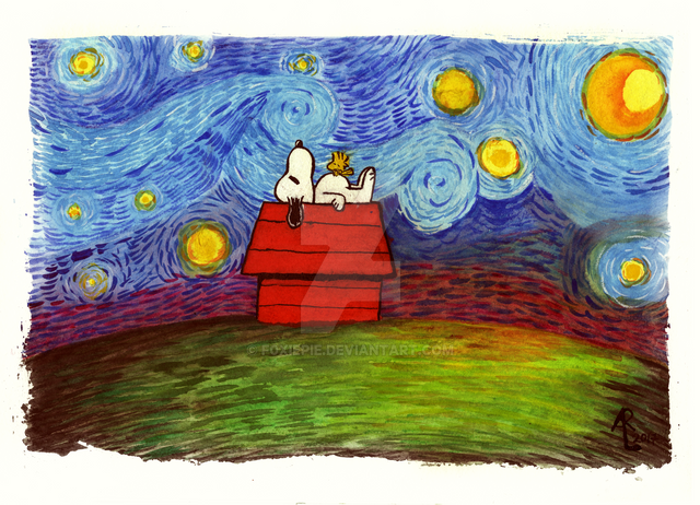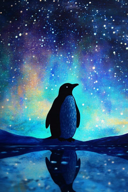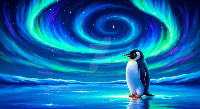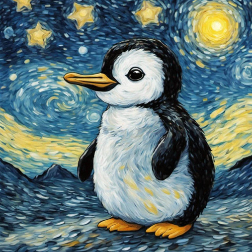 This work can be considered a fanart of the Music Penguin by B-Keks (I just added a rough sketch of Van Gogh Stellar Night).