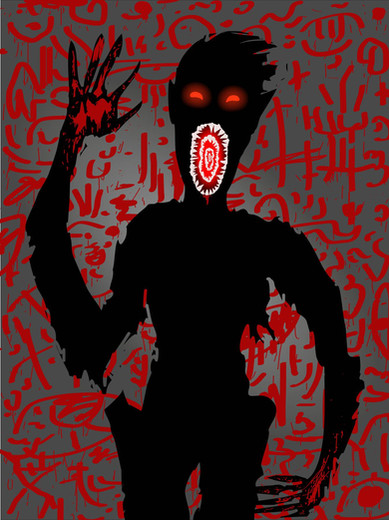 I'm not too knowledgeable on OCD, but I would like to say a few things (If they offend anyone or you, I'm sorry). The creature spewing out "WHO AM I?" greatly reflects those with OCD. It adds on that those affected with OCD may seem tidy on the outside, but are a wreck on the inside due to not thinking straight and struggling with identity. Also, the scratch texture n the background emphasizes the messy thoughts on just trying to make the littlest details perfect.