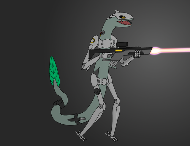 This (www.deviantart.com/epicness100… ) but the actual picture, and not just H-403 on his own.I will write here what I wrote there: "Here's H-403, a 'neoraptor' and protagonist of Liberation, my current novel project (as it has been so for a... rather long time). You will see older iterations of this character, perhaps under the old title of the story "Raptor of War", and of course his older design. But this one's nice and updated and my long boi is released for all to see."
