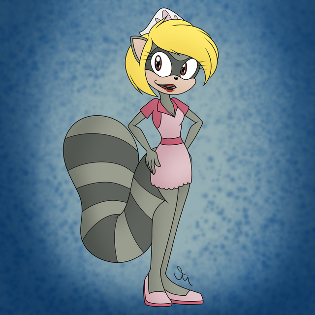 #aosth #character #cigarette #commission #design #hedgehog #raccoon #roxy #smoking #sonic #waitress