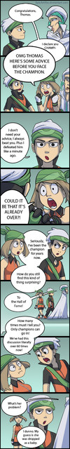 Fair enough, but I'm talking about how every time you come back to the Elite 4 building he's the Champion again, is it just because you're not there?