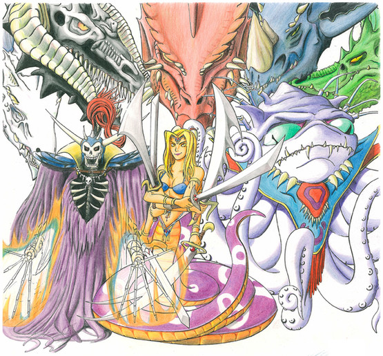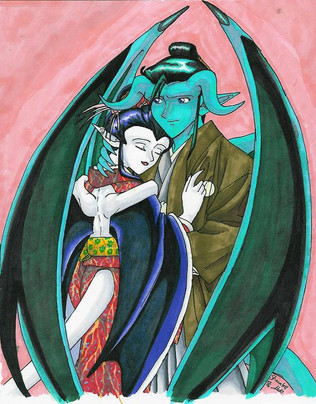Another slightly more recent Oldie. Characters that belong to both me and one other person - all of which is done jointly - sort of. He just asked me include them in his fics in a certain way.Anyway, this is where you can see Devon as he is now compared to the red figure he was. And there is Apollo just behind him.