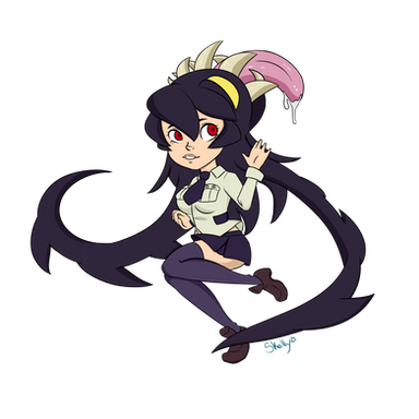 Filia and her parasite, Samson. From the awesome fighting game, Skullgirls. I had a lot of fun, with Filia, she was fun to design. Made for my Chibi Heroes and Protagonists art.My art is ©Equilibrik