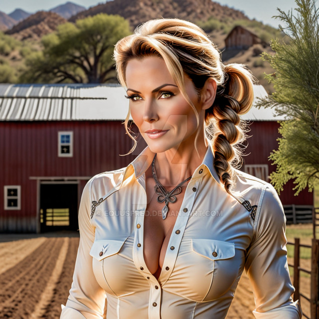 #ai #boobs #milf #alluring #attractive #beautiful #bigbreasts #breathtaking #brownhair #caucasian #charming #cleavage #countryside #cowgirl #farmgirl #girlfriend #gorgeous #hazeleyes #nonnude #ponytail #portrait #posing #seductive #sexygirl #sexywoman #tightshirt #western #woman #aiartwork #aigeneratedart