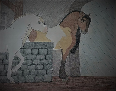 This is a random stallion that I drew. He is taking shelter from a rain storm. A somewhat early verson of Spirit.Related content