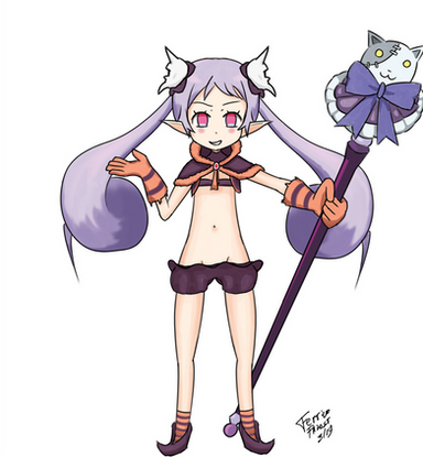 Well she's technically an ancient evil, that was sealed who knows how long in a line of catgirls, but she came out as a loli and was technically born in that moment. ... Especially with the sex symbolism, preceding her release, being the release ritual. So she's ancient and just born.