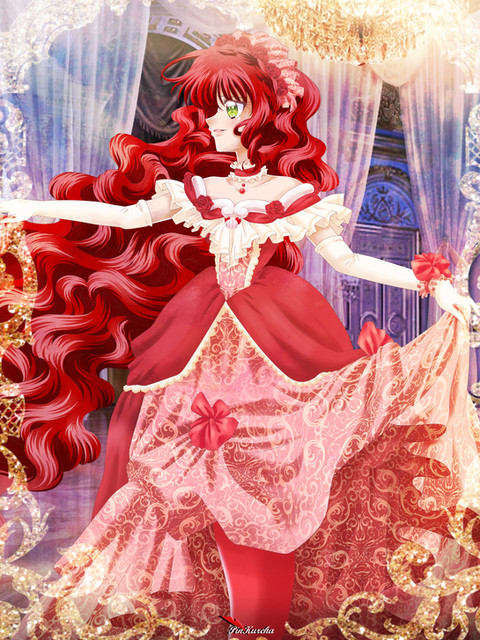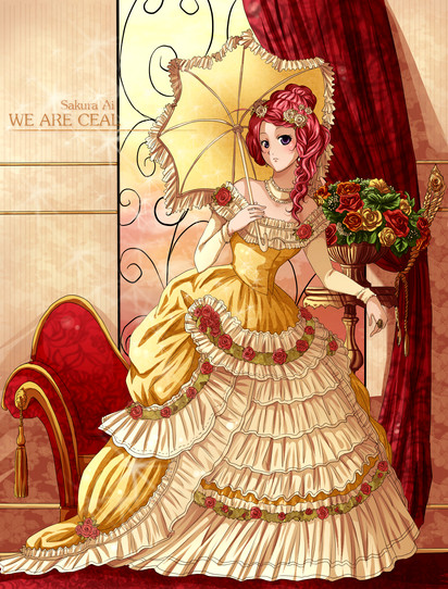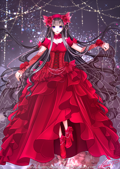 I really like this picture, the composition is cool, I love the design, and the details are better everytime you paint. Comparing to your Sapphire picture, I think you've gotten better, and you've done a better job with the perspective (the crown looks a little funny, but it's something minor). You're developing your art, and I'm glad to see your wonderful dresses again Come back sooner! (And sorry for not commenting Sapphire >.<).