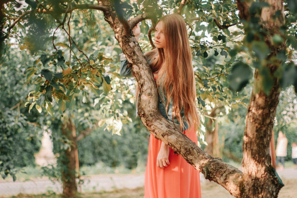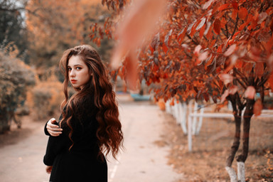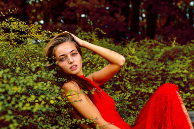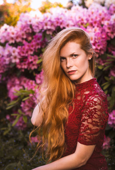 This photo is wonderful - the setting and lighting of the background are perfect, and the model is stunning! Her hair, her eyes, and the shape of her face are all just gorgeous. Nice job!!
