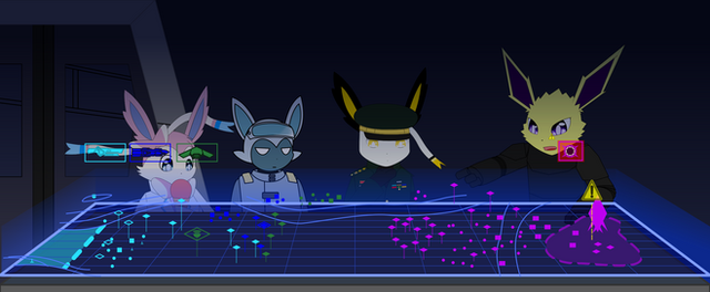 For 's AT.It shows her pokesona, along with , 's and, 's, as well as a sylveon one she made for me (thank you Honey! ), inside a dark cave, being surrounded by an unknown party.