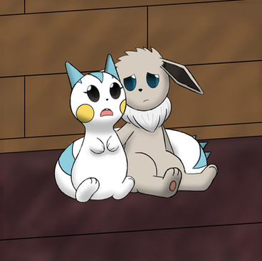 The eevee sat silently, feeling pressure in her chest. The rockruff approached again.
