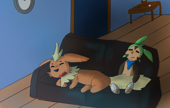 "Just leave me alone..." the eevee shuffled closer to the edge of the bed, now maybe if she's close to it he would finally get she wants him away, or she could just wait there until he gets bored, or she could just jump off and go away. But he approached again, making her suspect that it was intentional, instead of youth-related naïvete.