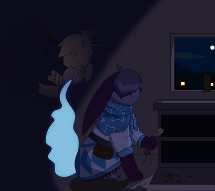 "You miss yours, right?" He asked, but she didn't reply. She dwelled on her thoughts while her shock turned into even more guilt for lashing out at him. "I don't remember doing any with mine but, like, Mr. Johnson said they were pretty cool, that they were team leaders and kept calling my egg 'role'-... 'raul'... 'roll', he said they liked to call me their 'roll', I didn't ever get it, I'm not tasty."