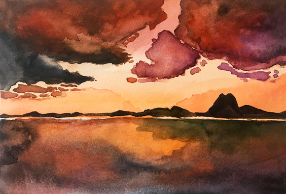Painted with Van Gogh and Schmincke watercolor an arches paper.Β