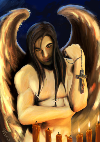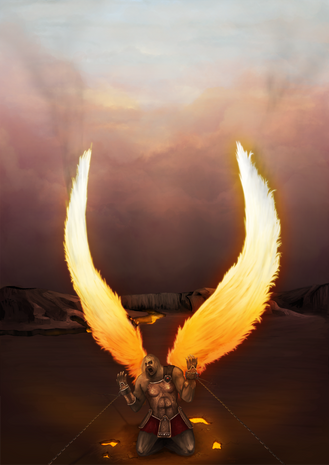 For the wings, they are not real at all, If you watch in the wings there are textures I painted with a mystical simbol (a symbol related to vengeance and punition), and the wings are supposed to merge with the clouds and the background.