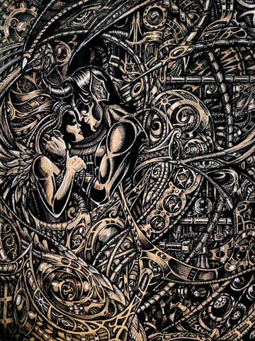The whole meaning of this work can be described in one song.)) I've had an idea of painting Unheilig's "Maschine" for about a year, I've been overburdened with the thoughts about the materials, the poses, the composition, etc.People who don't understand German speech often think, that "Maschine" is about some technical device, or so.