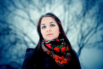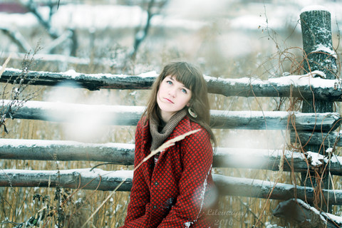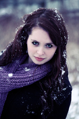 Beautiful photo, I love the colours of background and these lovely snowflakes in her hair