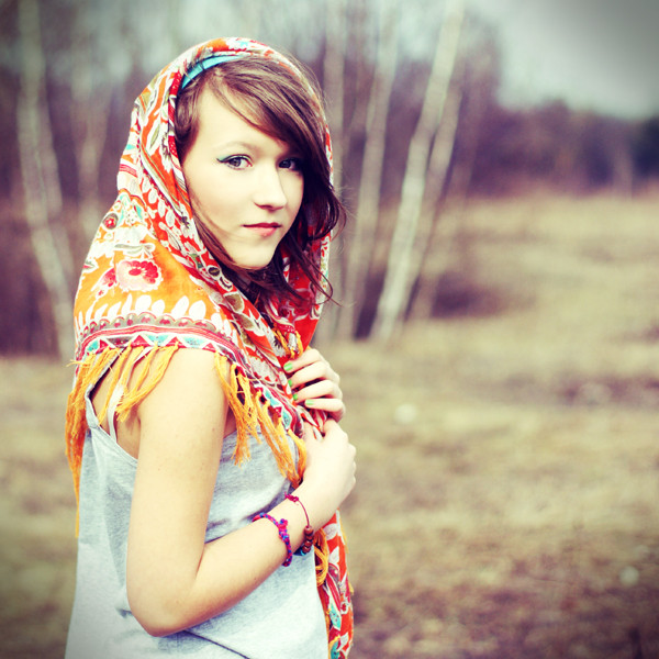 The eye shade makes a wonderful match with the background, while the scarf is the total warm opposite. And they all work together nicely.