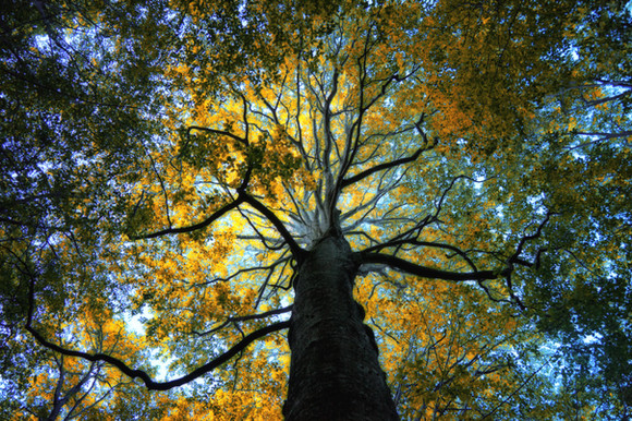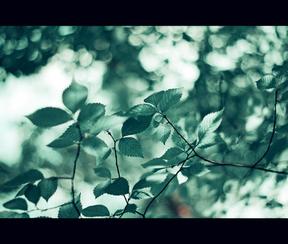Oh, wow. This is simple, but I haven't seen many photos like it! The bright green leaves against that dark sky...moving. I love this.