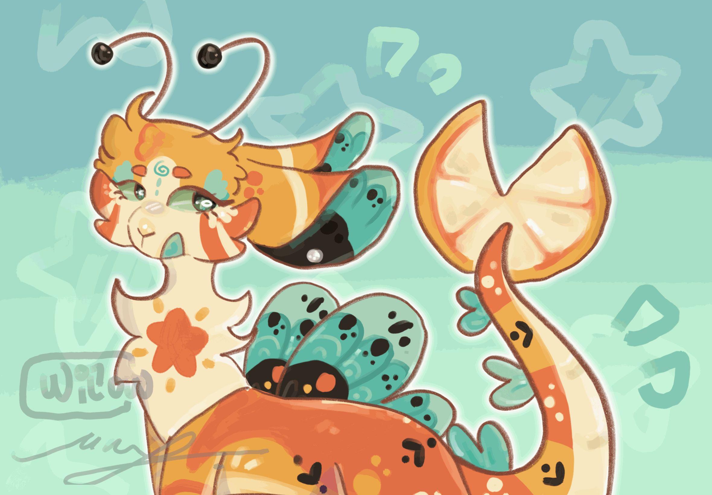 #af #artfight #cute #digitalart #dragon #fullbody #green #moth #orange #art #artfight2024 #eresse2009