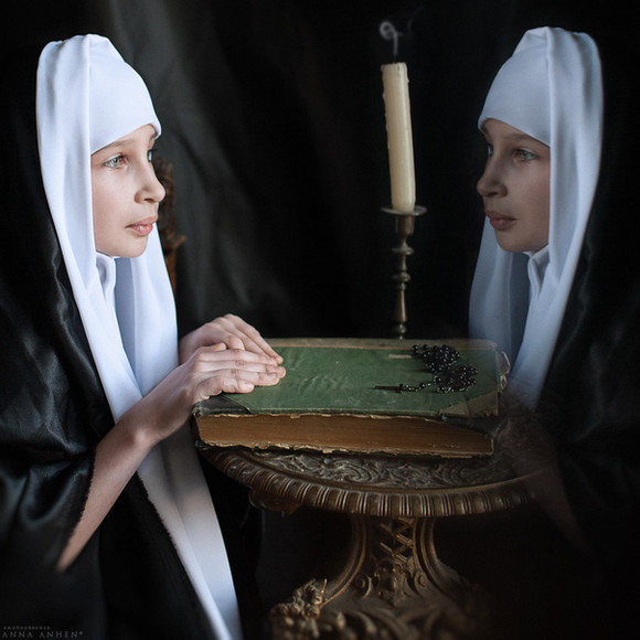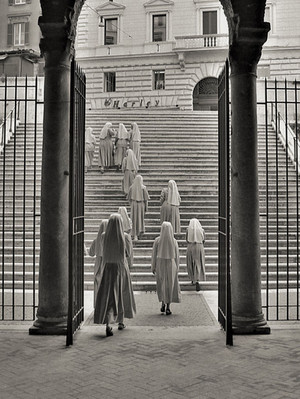 Thanks for the title - I would have changed the position of the first and second nun (from the left) to underline the message. Because the second nun looks up, the first one looks down to her book. If it would have been staged...