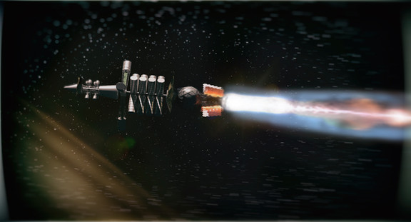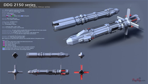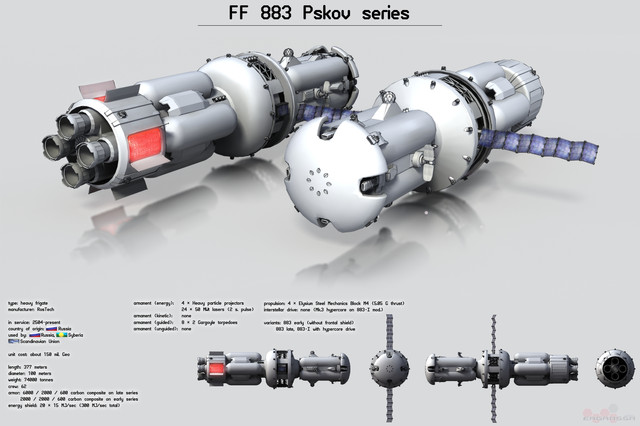 «Aleph Nine platform, developed in 120-s by Asfati Design Bureau, incarnated as Efreet space vessels by Silvannae Shipyards. First three Efreets were built as technology demonstration vessels — The Samael ASV Phi-17 interplanet cargo vessel; The Lucifer ASV Dalet-06 interstellar vessel and The Asmodeus ASCV 3/5 heavy patrol ship. In year 140, the second series of Efreets are constructed, and the newborn is Azrail ASV Phi-18 modular interplanet transport vessel.» — Lecture by l. Proton Terra Alpha in Cosmic Training Center, Ashtad, year 140.«Платформа А9, разработанная в 120х годах КБ Асфати, нашла свое воплощение в космических кораблях серии Ифрит Сильванских космоверфей. Корабли первой серии были построены в первую очередь как демонстраторы технологий: межпланетный транспортник ККА Ф17 Самаэль, межзвездный ККА Д06 Люцифер и межпланетный патрульный корабль БККА 3/5 Асмодей. В 140 году была начата постройка второй серии по проекту А9, и первым кораблем в ней стал ККА Ф18 Азраил, показанный на данном автохроме.» — Транскрипт лекции в ЦПК Аштад, лектор Протон Терра Альфа, 140 год.