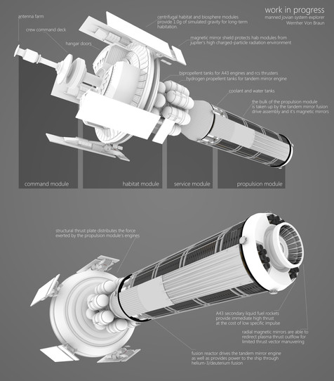 First and second stages are LOX/Kerosene rockets, and orbiter uses MMH/N2O4 in fighter/bomber and late interceptor variant and nuclear salt-water engine in early interceptor variant.