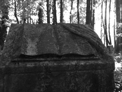A shot I took in the cemetary. I tried one with a blur up front and one farther back, and went with one farther back, thinking it worked with the words as they sort of "[fled] away" in the blur.Related content