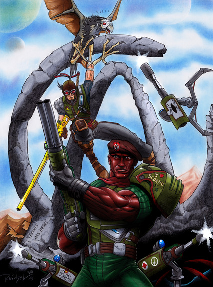 Making it more difficult was trying to figure out the clothing in relation to the poses/perspective. Mainly I'm referring to Durandal's top (I'm not sure that torso piece thing looks right) and Tycho's coat (I had no idea how his coat should look in that pose