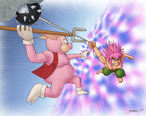 It was kind of weird at first colouring a dark character like Magus in all these light, soft colours, but I like how it turned out anyway. I tried loosely basing the colours of the background on Magus' room where you fight him, but again, it kinda got lost in the colouring style. There is still a bit of blue at the bottom from the blue flames on the floor and orange from the statue thing with the fire behind him in his room.
