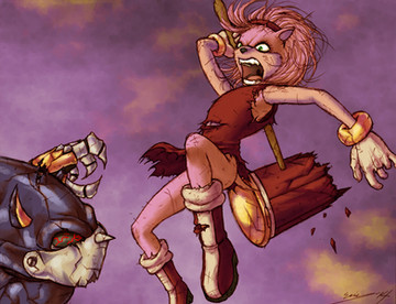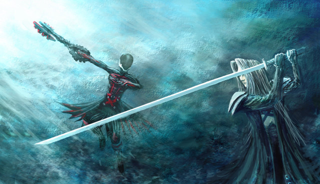 Whoa... I've never thought of Aerith as a badass, always seeing her as the beautiful, tragic lover with the incredible healing powers. This? This makes me a little afraid of the flower girl... her disheveled look, wild hair, and obvious hatred for Sephiroth makes her out to be this being of unmatched rage and power. As for the One Winged Angel himself? I dunno what to say... I always think of him as overrated until I see a piece of fanart like this or i watch Advent Children again. Excellent work on the whole piece!