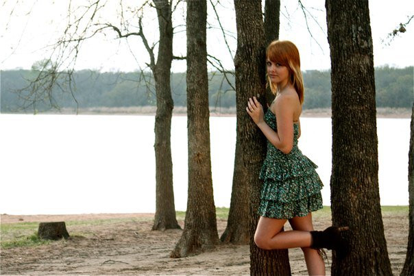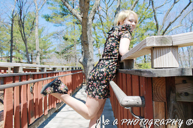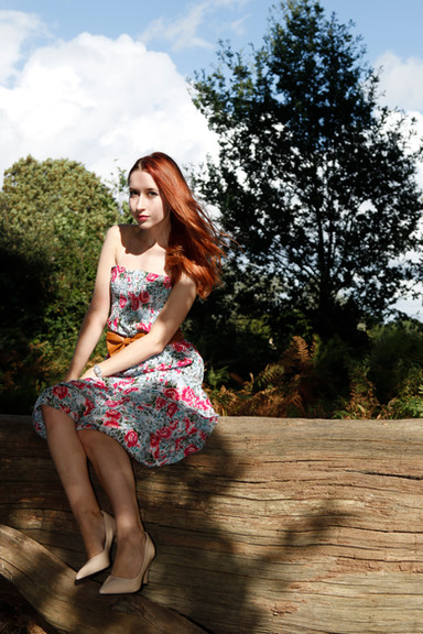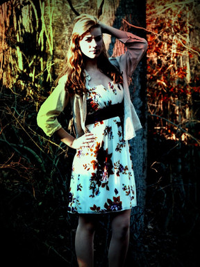 gorgeous, seriously. loving that contrast with dress and natural backgroud. great line work with the fence and trees. the cut off arm is abit awkward but overall, killing it.