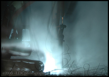 A painting-with-light image (I lit the crane thing with a flashlight) from a night photography field-trip I lead in downtown Halifax last night.Canon 5D MK II, two image exposure blend