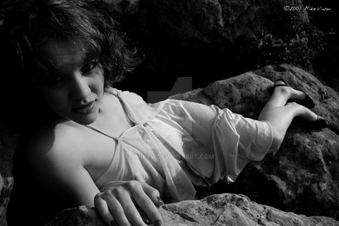 I can see how strong the light was but it has worked well for you here as the skin/rock contrast is very effective...I like the way Stephanie is just emerging from her granite hideout..