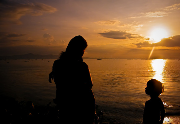 At the time I liked that moment caught, but these days what appeals to me is the idea of a mother of a young child finding or taking some time to look at a sunset - and where is the father? Perhaps you're right, the situation might not be so sweet (or saccharine) as it looks at first.
