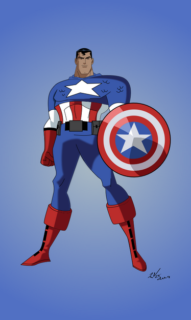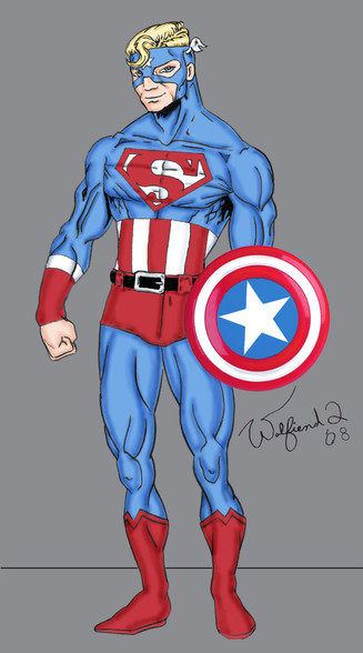 This is a very interesting amalgam that you've got here, and I think it's pretty cool. I like how the costume mixes the aspects of both Captain America with the shield and color scheme, and Superman with the kryptonian symbol and the red cape.