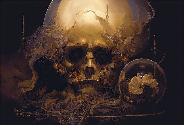 A few years ago I decided to doodle a skull. Doodling is not something I indulge in much, but it ended up a semi-polished painting anyway. Despite some flaws, the colors and contrast always stood out to me and I decided to give it the "re-imagined" treatment.