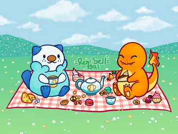 Originally created in 2021.Commission for KnightPandi where two ground type Pokémon share a snack.