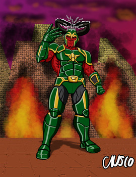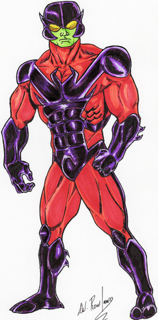 Here's my original villain, HELLARAX, a star predator who is the astral opposite to the singularity, an entity who feeds on the energy produced only when stars collide. Hellarax forces them to do so and then feeds on the unfathomable energy making him stronger and even more powerful. Any planets unfortunate enough to be in the proximity get destroyed. Hellarax is responsible for the destruction of countless galaxies, stars and worlds, a horrifying plague on the universe.Related content
