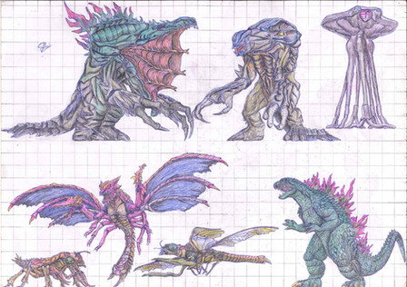 I did take some liberties, especially with the raw alien form, the movie's crude featureless CGI just isn't very visually interesting. I think I like this movie more than the average Godzilla fan, but I do feel like Orga might have come up a little short of his potential. That DNA stealing thing could be used in more interesting ways, maybe like the chimera in one of those unused American Godzilla scripts.